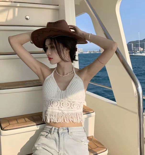 y2k-inspired backless halter crop top. airy, lightweight, and perfect for summer styling or streetwear looks.